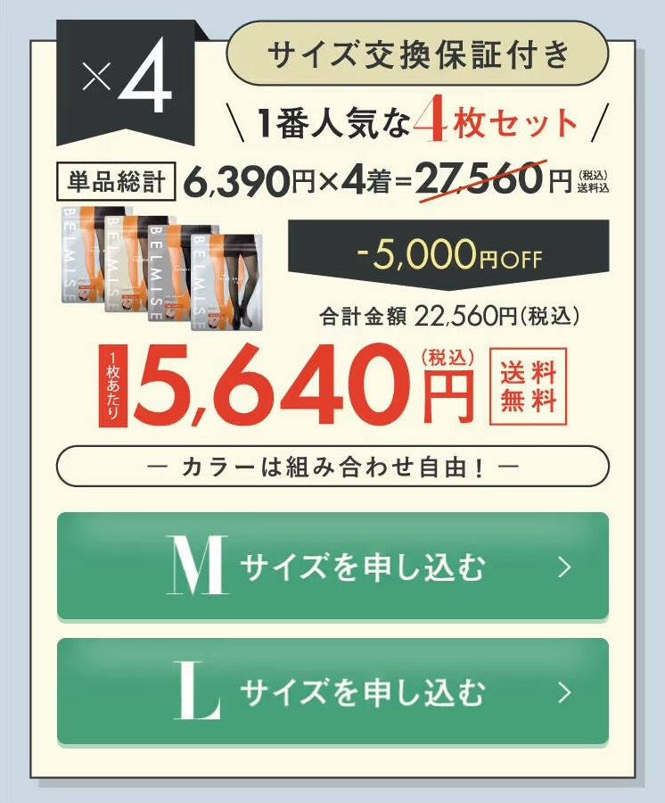 | ベルミス スリムレギンスcolor + | 1着2,856円 | 5,490円 | 5,490円 | 5,490円 | 公式サイト→◎ |
