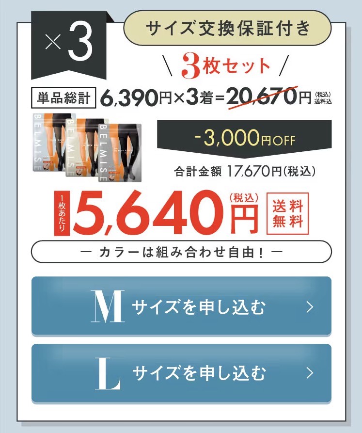 | ベルミス スリムタイツ | 1着2,856円 | 4,790円 | 4,790円 | 4,790円 | 公式サイト→◎ |
