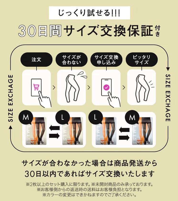 今なら30日間のサイズ交換保証も付いている↓ので、万が一の場合も安心できると思いますよ!